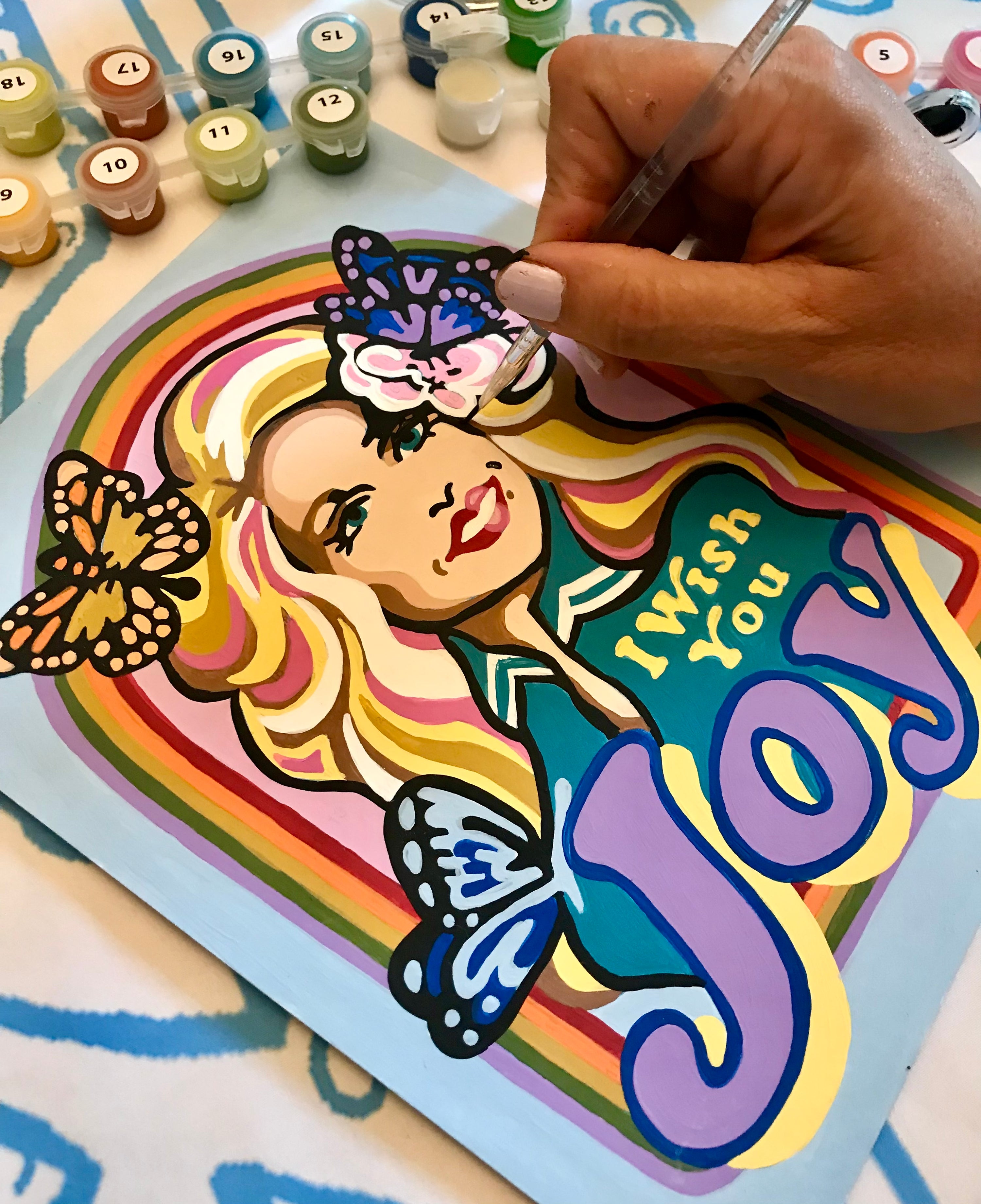 I’m Camilla, the designer of your paint by number kits. I design each kit with the same brush and paint that comes in your kit. I’m a former art teacher and currently working as an artist in Nashville, Tennessee