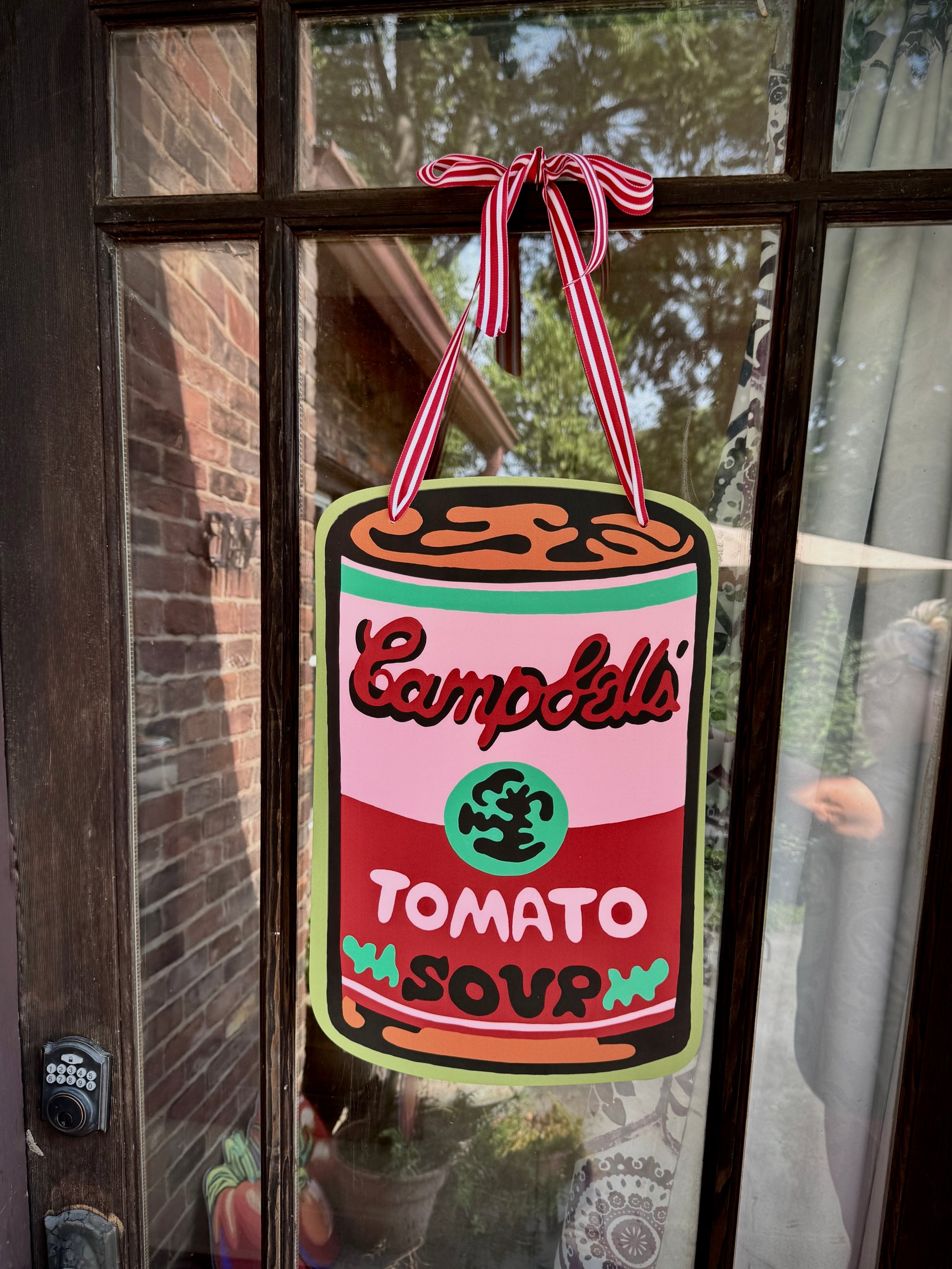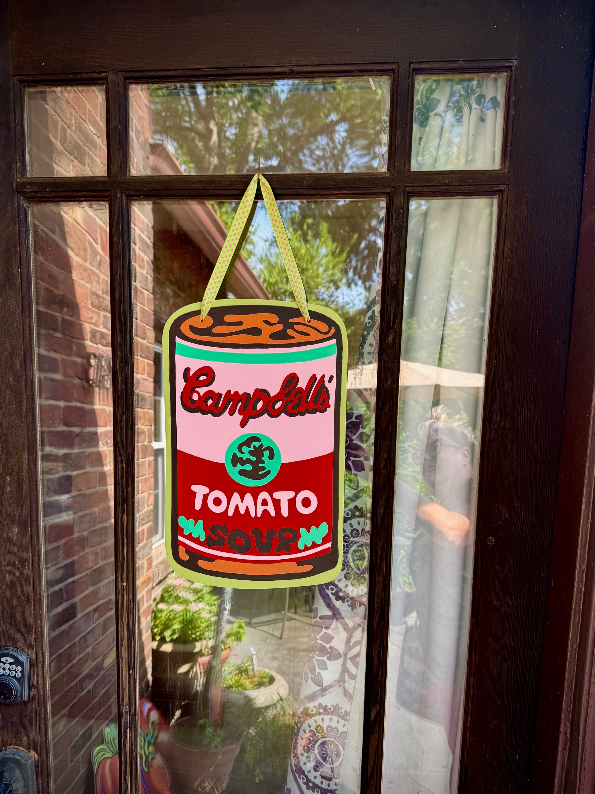 Tomato Can Door Hanger in Pink and Green - Ribbon Varies