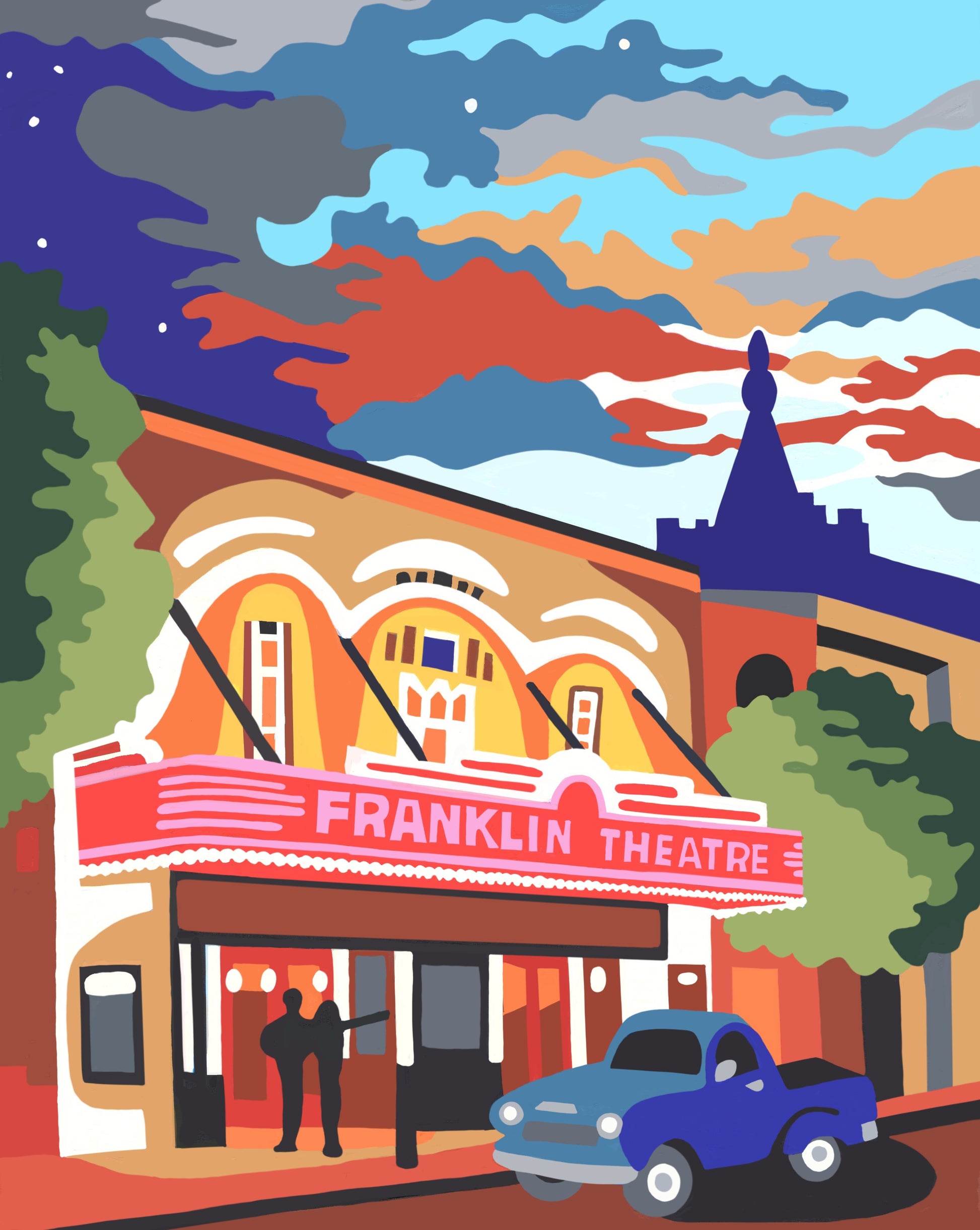 8”x10” print of our Historic Franklin paint by number kit’s artwork. The print depicts the scene of the Franklin Theater on a Summer night in Tennessee. Each comes with protective sleeve and cardboard backing. Easily pops into any standard 8”x10” frame.