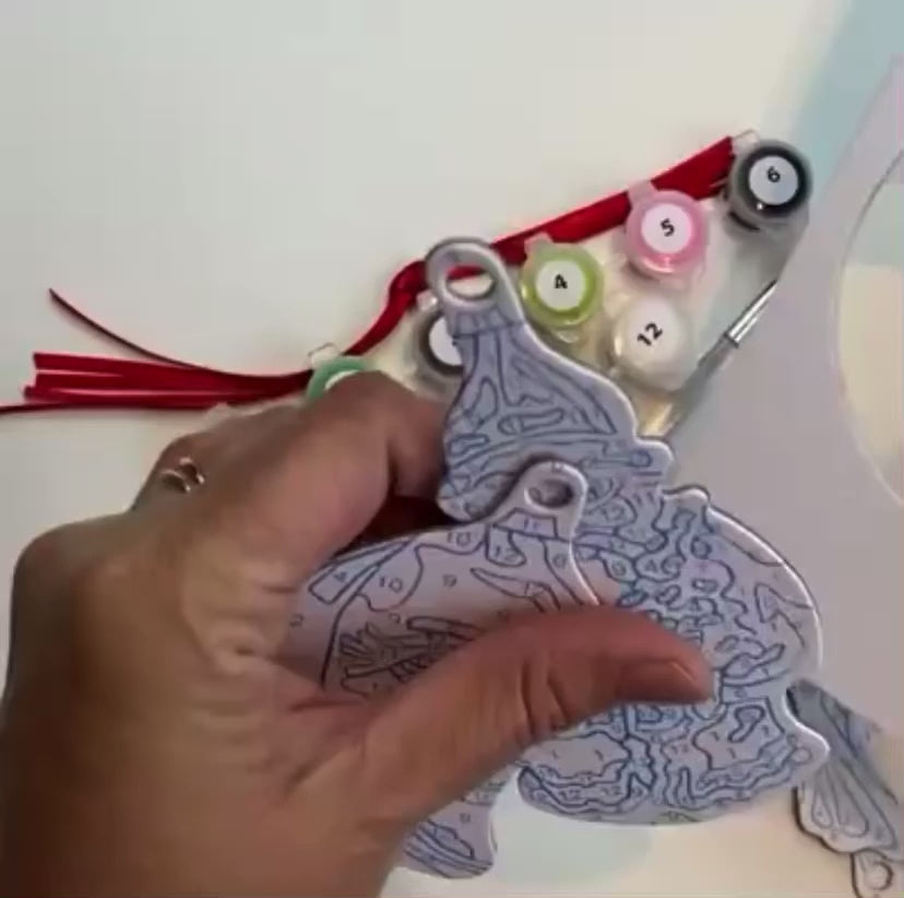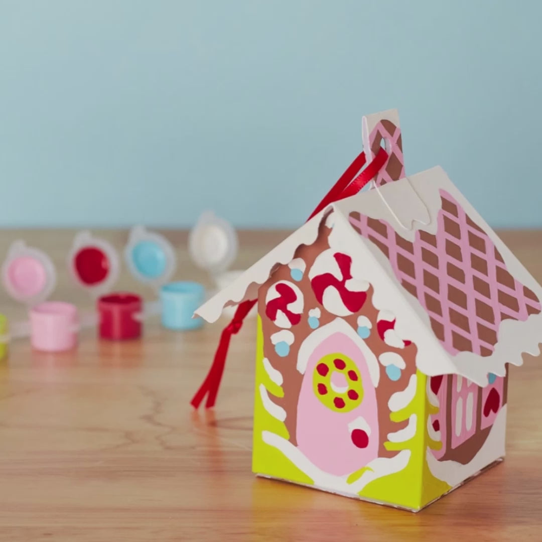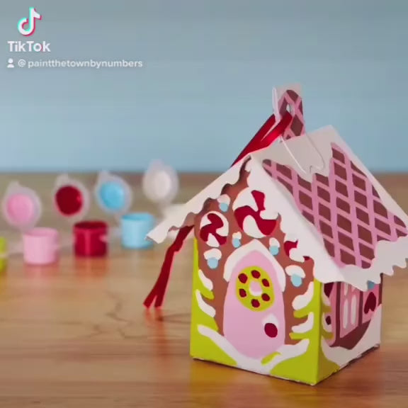 Everything you need to construct and paint this 3D Gingerbread House paint by number ornament kit is included in your package: 4 pieces of precut and scored sections of the house on heavy cardboard paper; Glue Dot brand glue dots; 6 acrylic paint colors; one high-quality paint brush, and a red ribbon with which to hang your ornament. Finished house measures 5” high and 4” wide.