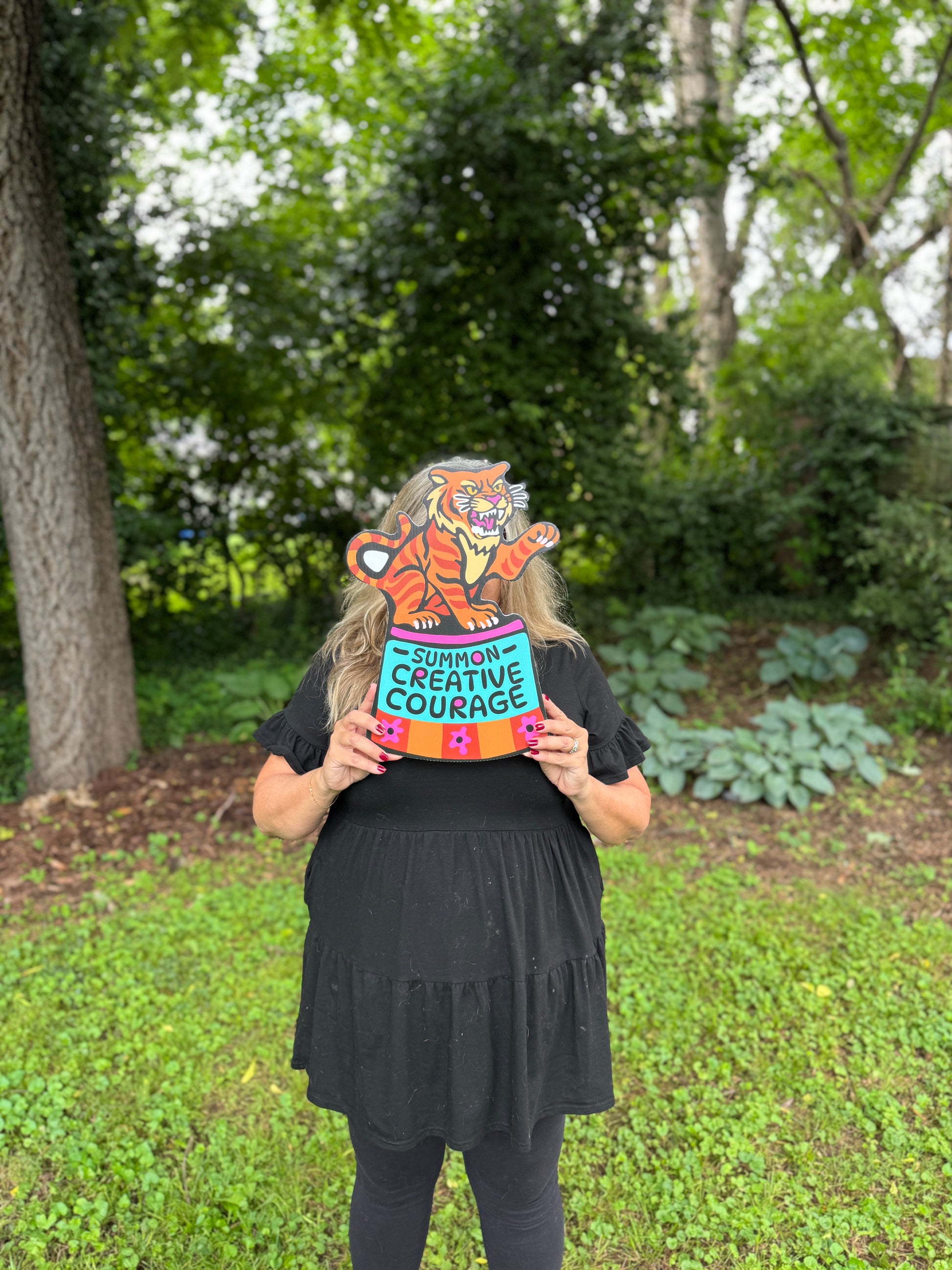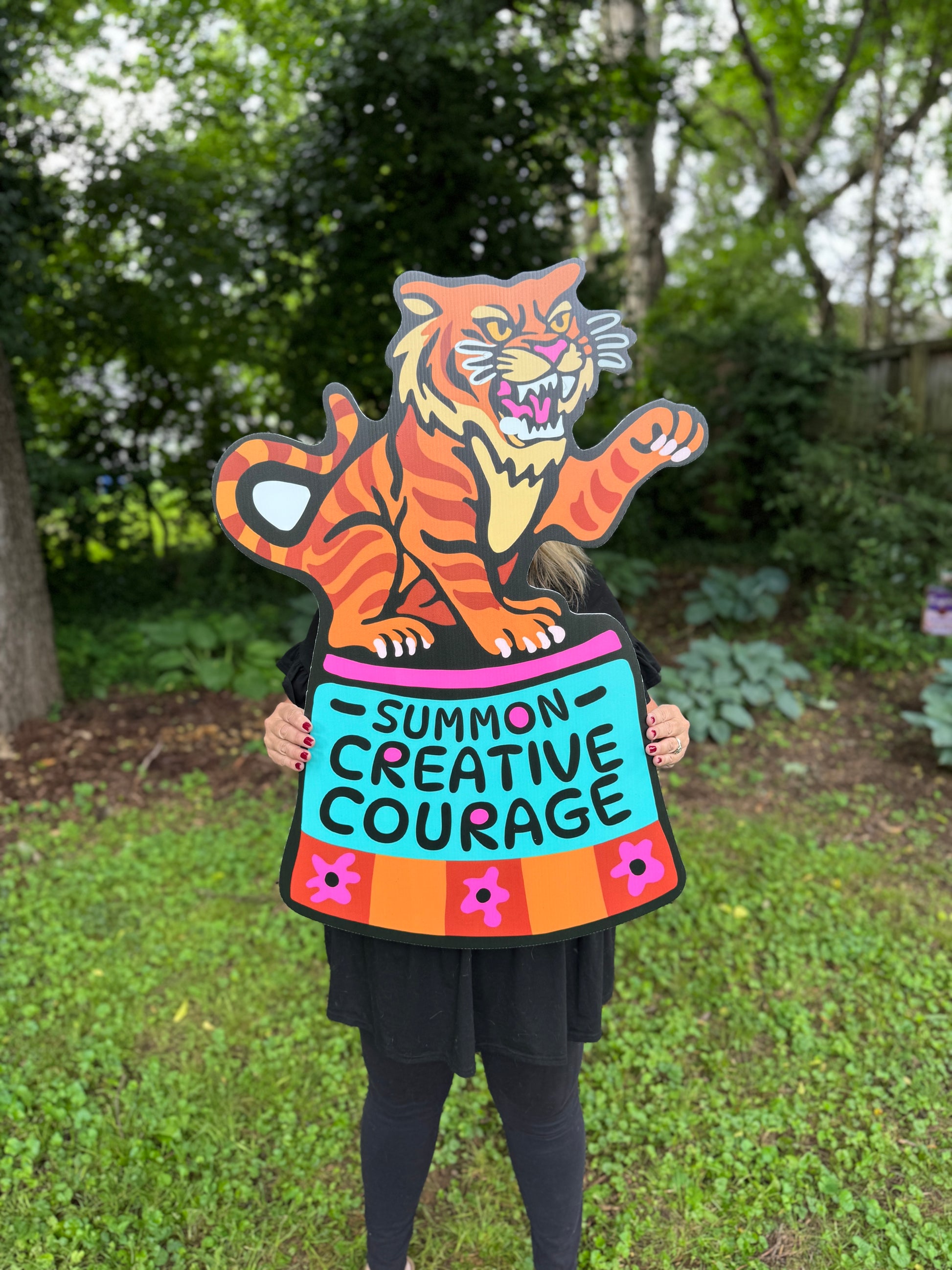 Summon creative courage! Show your inventive spirit with this original piece of fierce creative circus tiger yard art (aka yART). Sign measures: