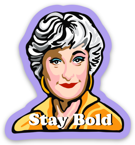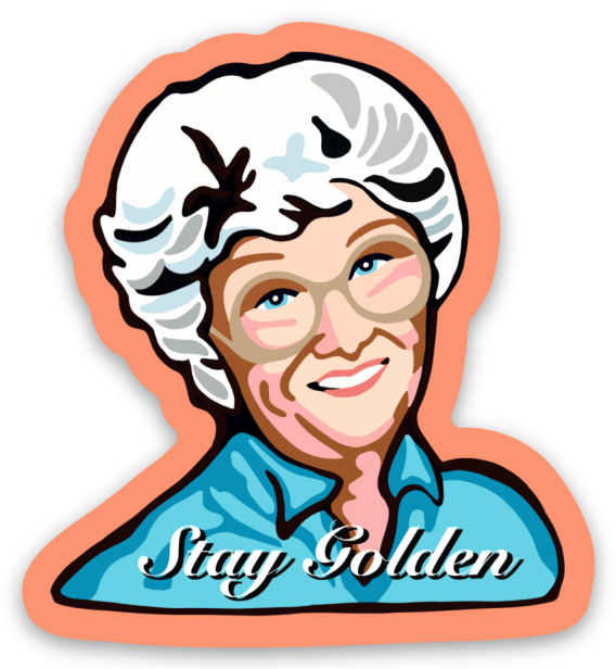 approximate 2 inch small sturdy vinyl sticker depicting one of each of the four Golden Girls. This listing is for a set and includes four different Golden Girls. Great for computers, helmets, drinking bottles—it’s dishwasher safe! Made in USA.