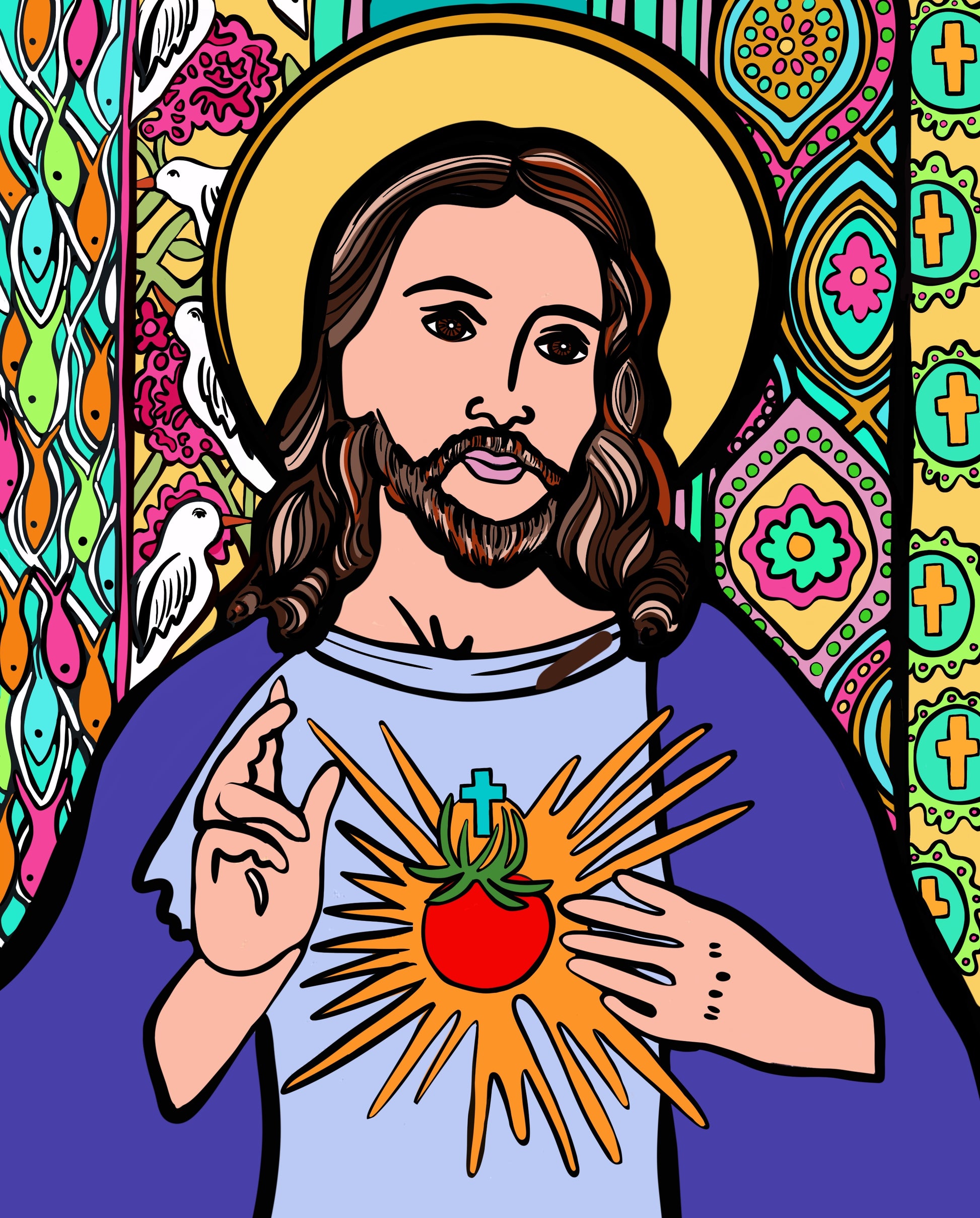 This 8” x 10” print of Jesus is part of a four-painting series originally created for the Tomato Art Fest. The series honors major world religions through portraiture and shared symbolism, highlighting themes of unity, reverence, and coexistence.