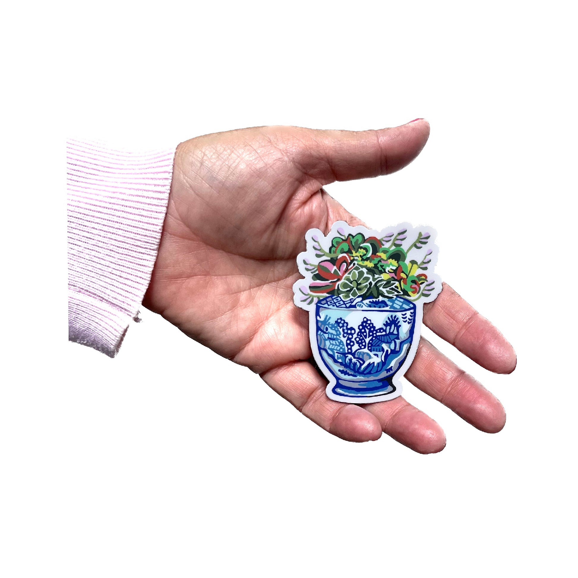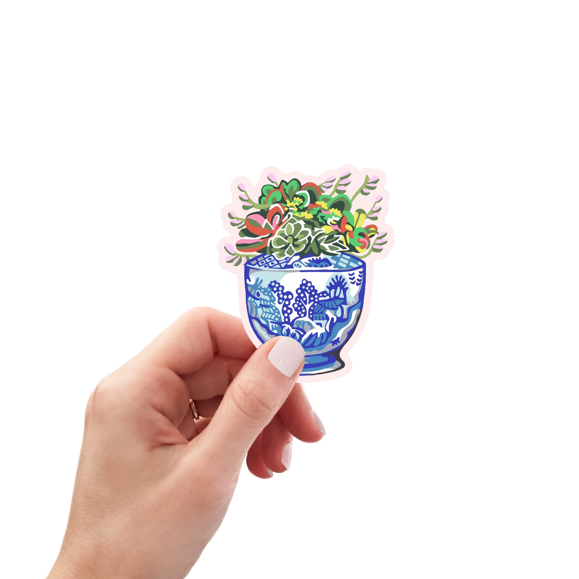 Succulents in Ginger Jar Sticker; 2.5”x1.75” Vinyl Decal; Free Shipping