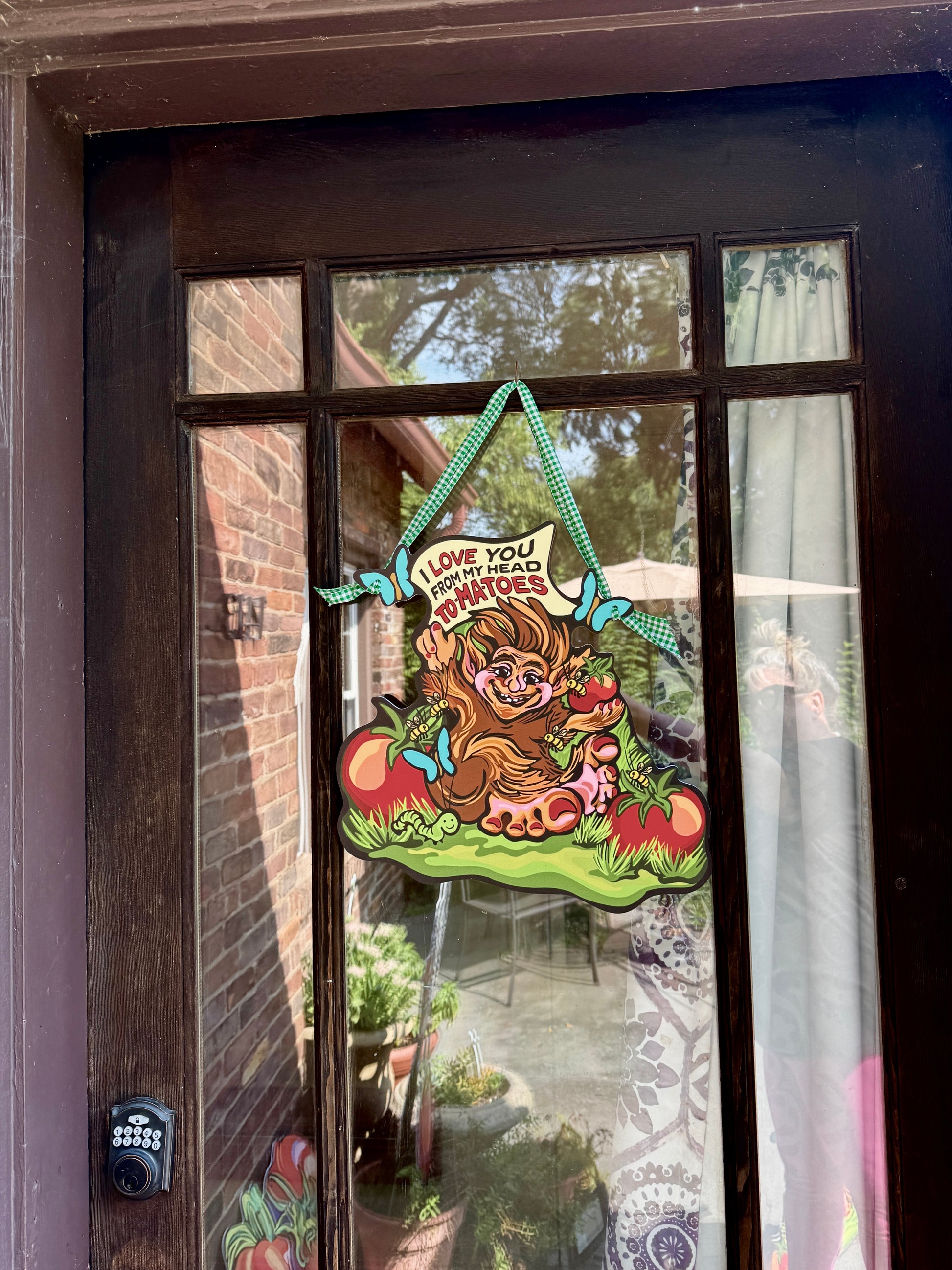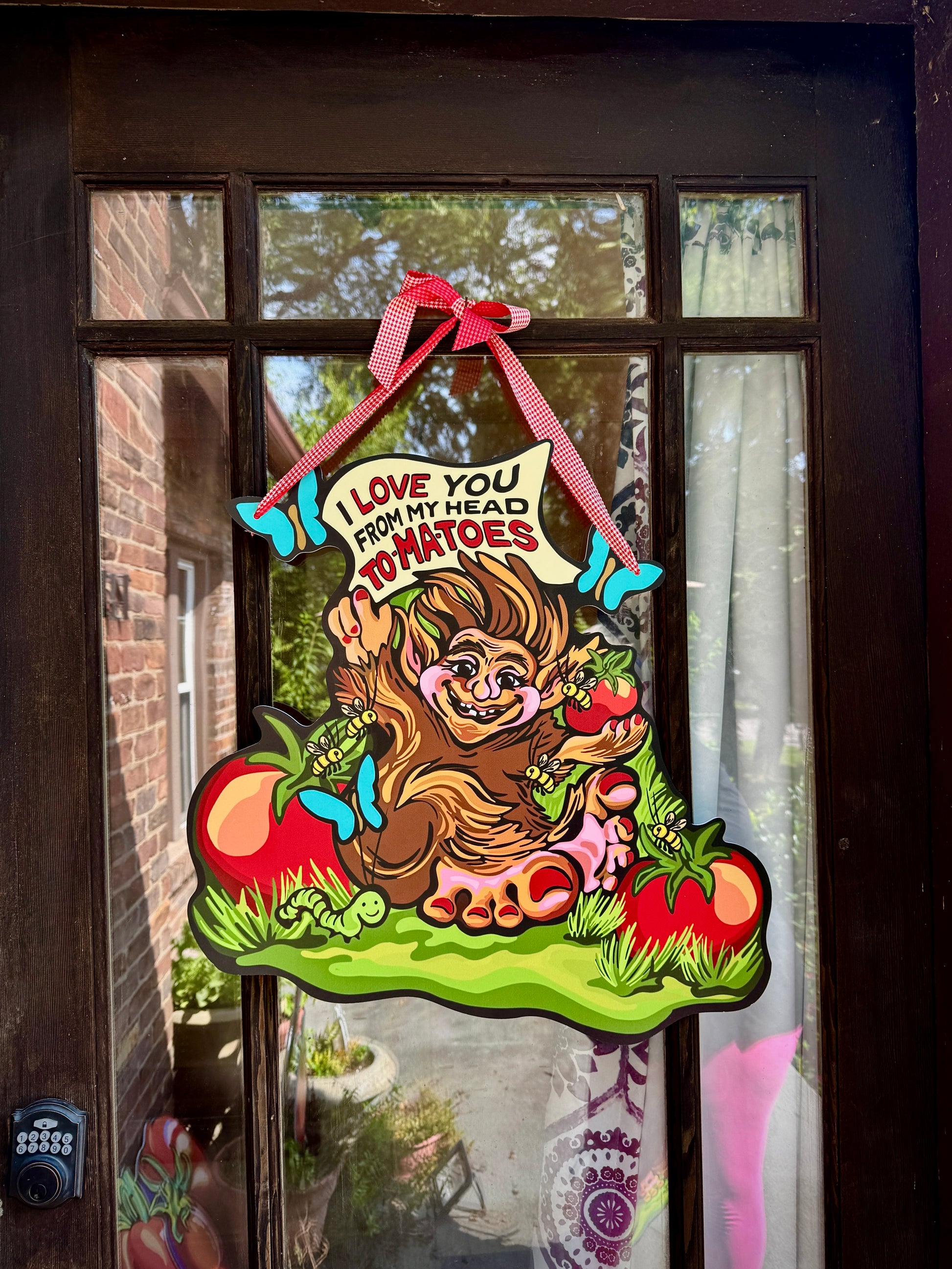 At the heart of the illustration is the Tomato Troll — Nashville’s newest mascot, made entirely from love. Rather than guarding the bridge, this fairy tale friend is there to greet and welcome all who travel through and around our city. With oversized toes and a playful message — “I love you from my head to MA toes” — the troll invites everyone to the East Bank with open arms and a big-hearted grin.