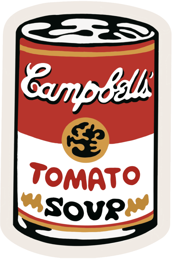 Tomato Soup Can decal! Inspired by Andy Warhol’s Pop Art Campbell’s Soup Can series. 3”x2” sturdy vinyl sticker; great for computers, helmets, drinking bottles—it’s dishwasher safe!