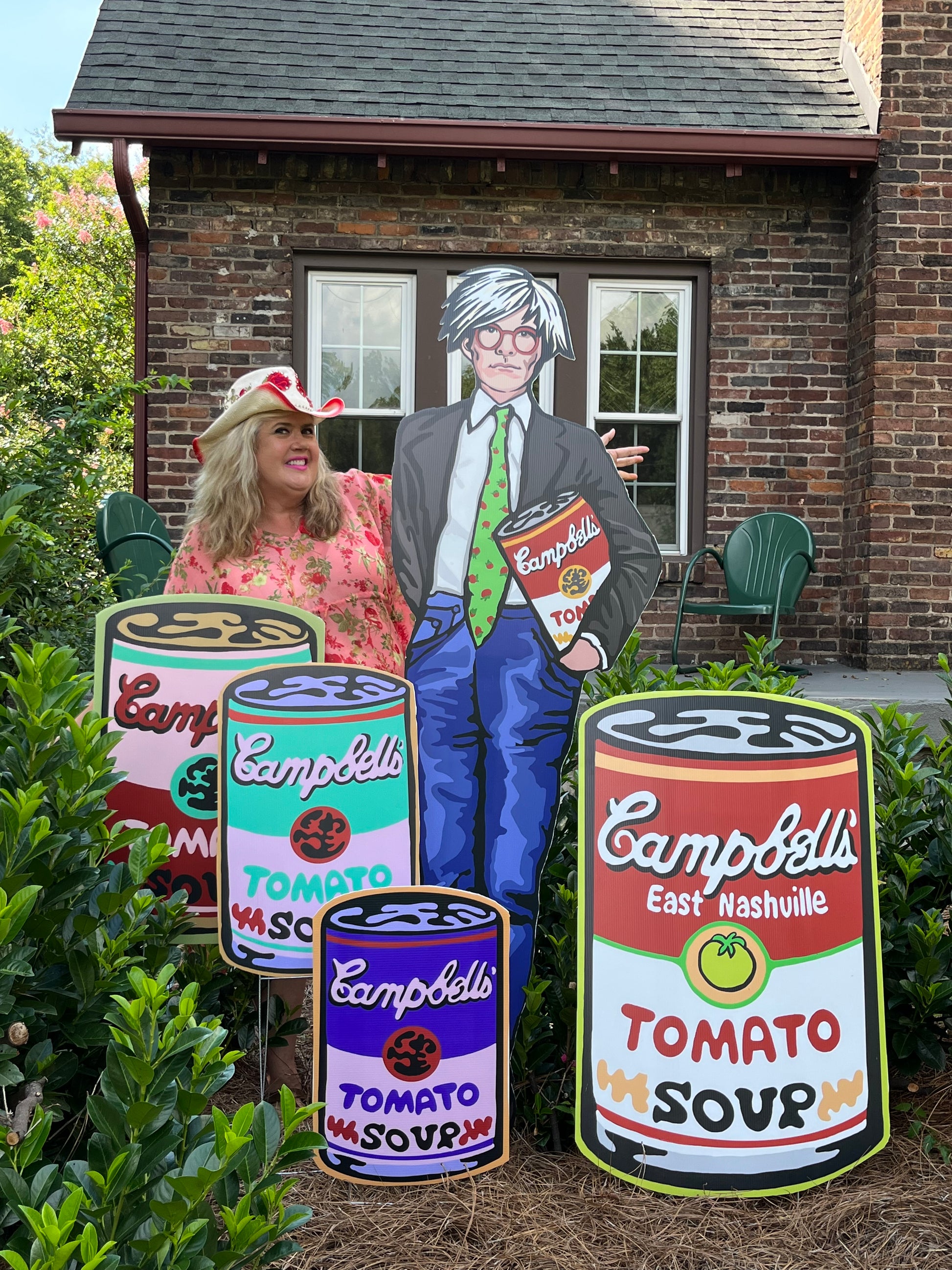 Show your East Nashville Tomato spirit with this original piece of yard art (aka yART). Sign measures 21 1/2 inches wide and 33 1/2 inches tall and says, “Campbell’s East Nashville Tomato Soup”. Made out of durable outdoor yard sign material with great color graphics. The sign comes with a heavy duty wire stand included.